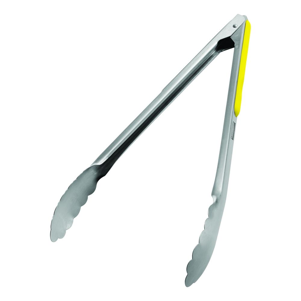 Edelstahl Servierzange/Küchenzange mit gelber Gummierung auf dem Griff