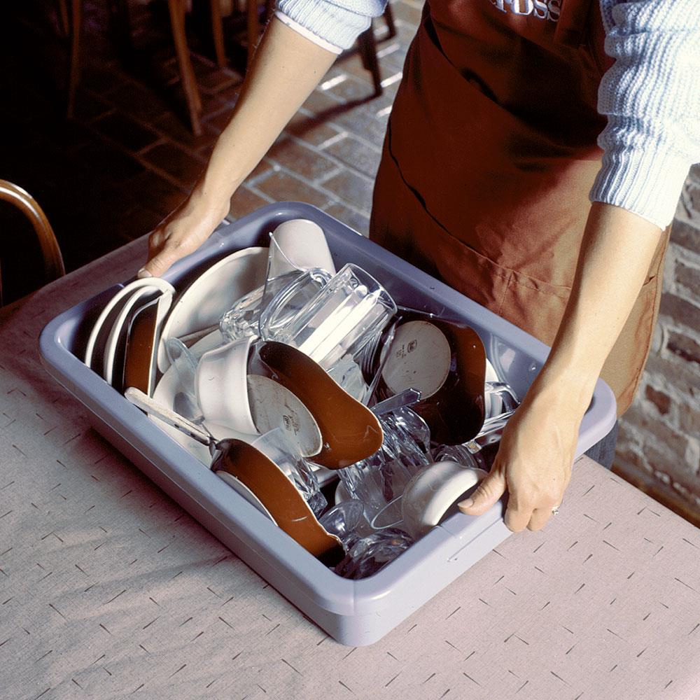 Stabiler und robuster Allzweckbehälter von Rubbermaid aus Polyethylen (PE-HD) mit extra verstärkten Griffen und Stegen sowie verstärktem Unterboden für eine lange Lebensdauer. Der Transportbehälter ist bestens geeignet für schwere Lasten und erfüllt die HACCP-Richtlinien. Der Behälter ist Spülmaschinengeeignet, abgerundete Ecken ermöglichen eine leichte Reinigung.