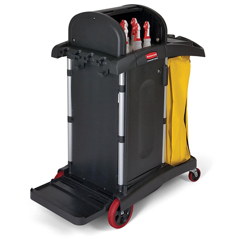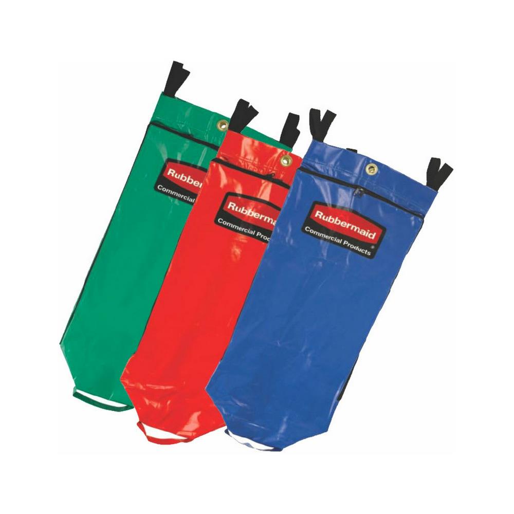 Hochwertiges Recycling-Vinylsack-Set mit hohem Fassungsvermögen. Die Vinylsäcke mit wasserfester PVC-Beschichtung fassen bis zu 128 Liter und steigern die Produktivität, indem sie die erforderliche Anzahl der Entleerungen verringern. Reißverschlüsse an der Vorderseite erleichtern die Abfallentsorgung. Geeignet für Rubbermaid Reinigungswagen High-Capacity, Mikrofaser- Reinigungswagen und Reinigungswagen Hygen High Security.